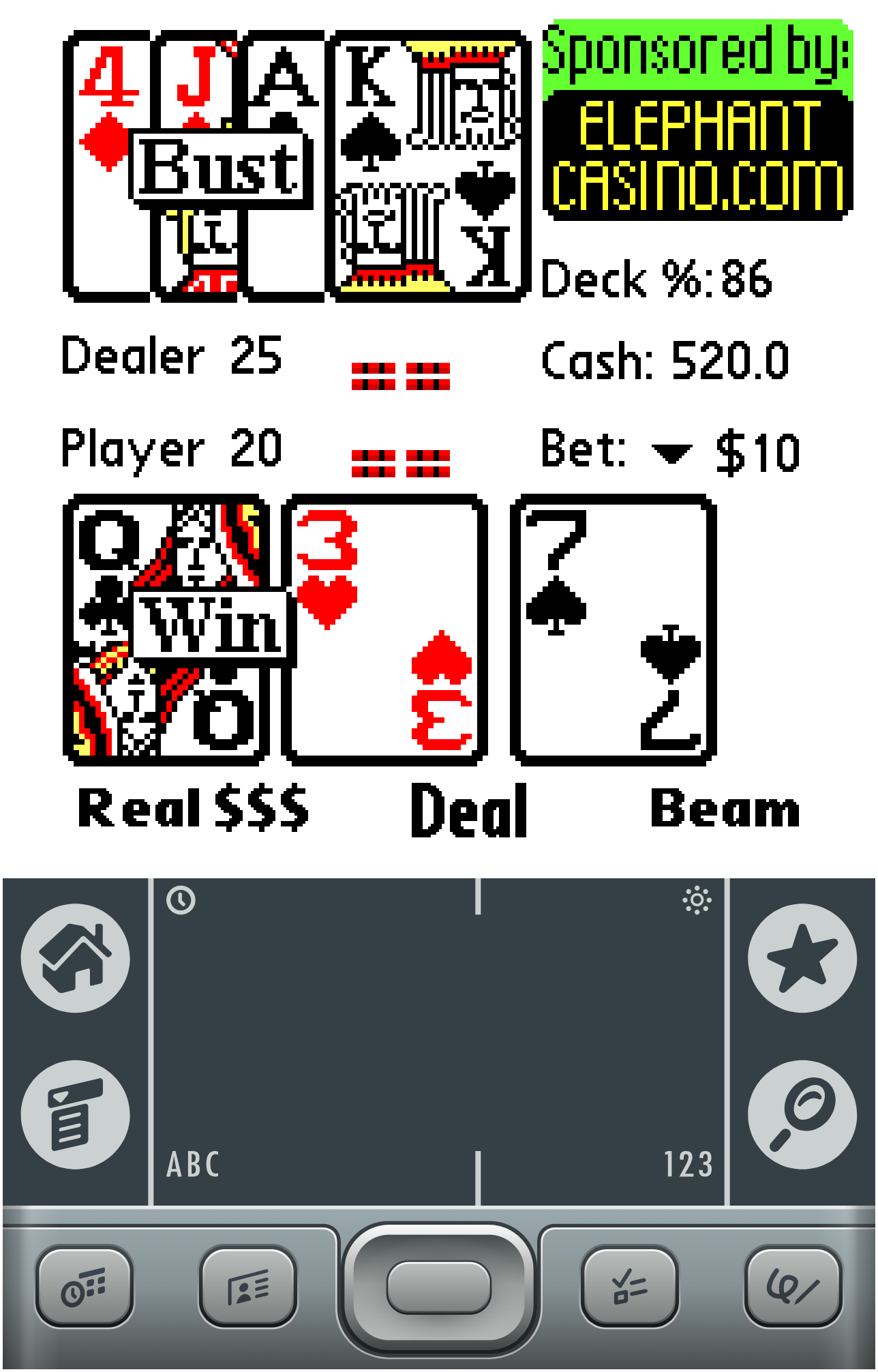 Riichi mahjong game. The score screen is garbled on English-language Palms, but gameplay is unaffected if you know the rules. Unfortunately it seems to restart the game whenever you switch to another app.